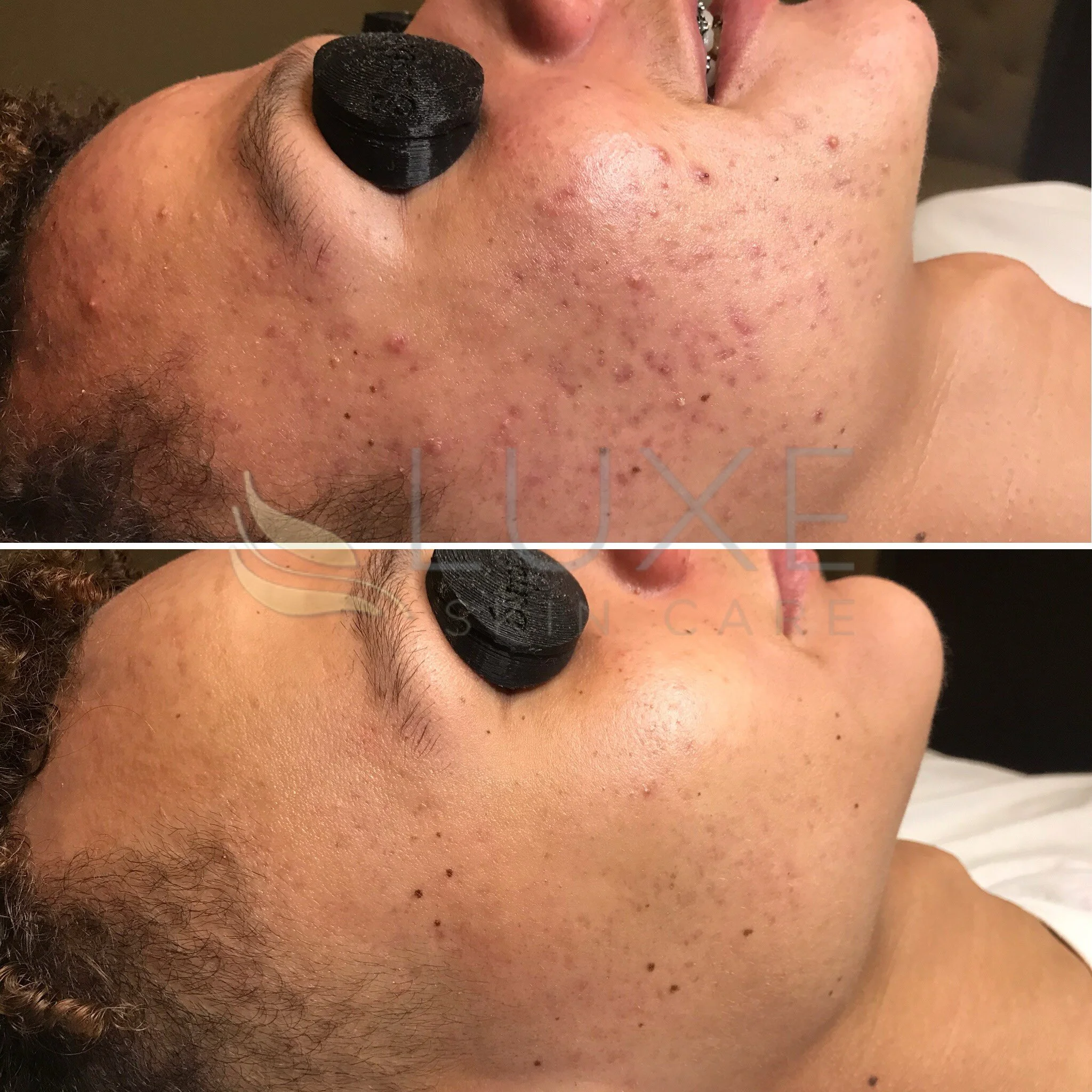 You’ll see an exciting decrease in acne spots and scars during your treatments. Once your acne is eliminated and under control, you’ll shift to The Finish Line or scar treatments and continued skin care for your skin at home to stay clear.